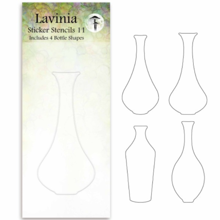De vackra nya klistermärkesschablonerna i Sticker Stencils Set 11 har 4 mönster av en hög flaska perfekt för mindre kort. De är perfekta för det mindre kortet.